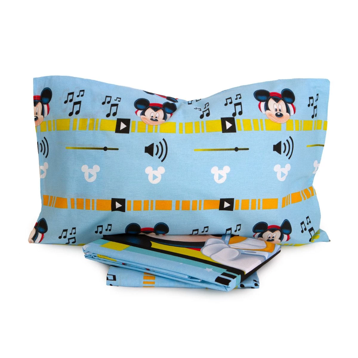 | Dettagli | La confezione contiene un completo lenzuola composto da: 1 lenzuolo sopra 1 lenzuolo sotto con angoli 1 federa a sacchetto doubleface Stampa con Mickey Mouse Morbido e fresco cotone |