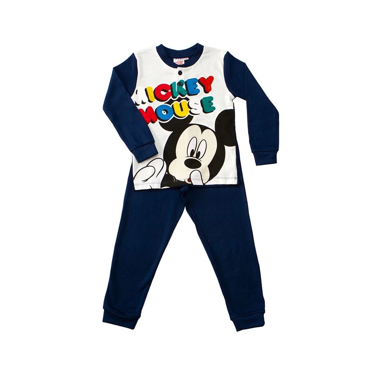 | Dettagli | La confezione contiene un pigiama per bambino composto da: 1 maglia stampata scollo serafino a due bottoni con polsini elasticizzati 1 pantalone tinta unita con elastico in vita e polsini elasticizzati Stampa di Topolino Morbido caldo cotone ideale per il periodo invernale Prodotto dalla licenziataria ufficiale del marchio |