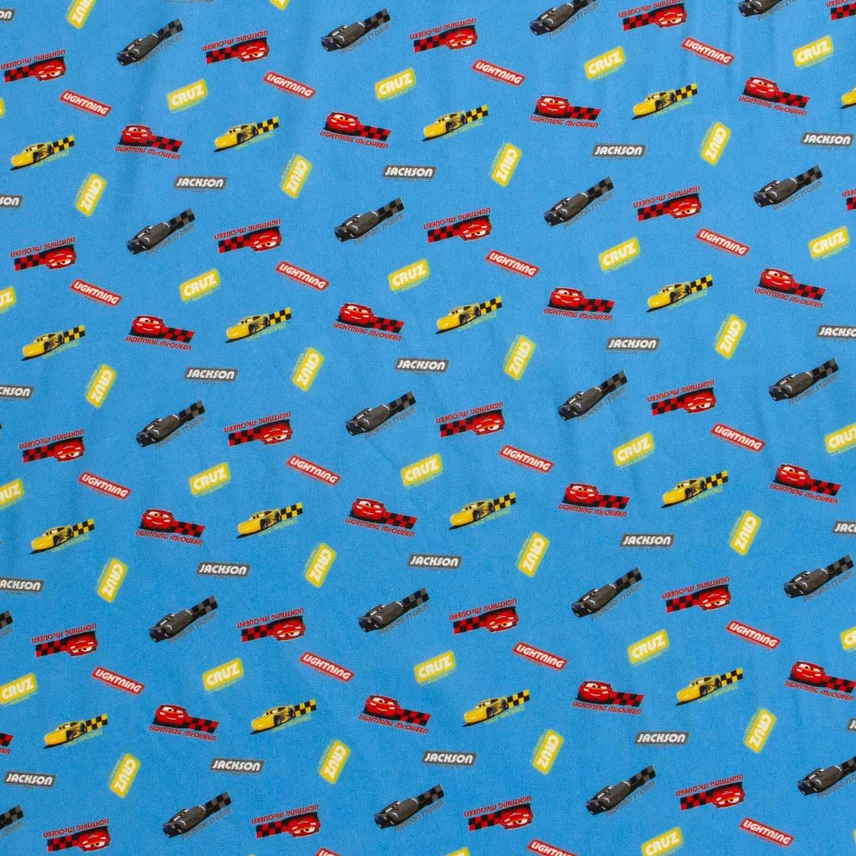 Saetta McQueen con i suoi amici è la protagonista della stampa del tessuto al metro di Cars, con il quale potrai dar vita a tantissime creazioni differenti per arredare la cameretta del piccolo pilota di casa.